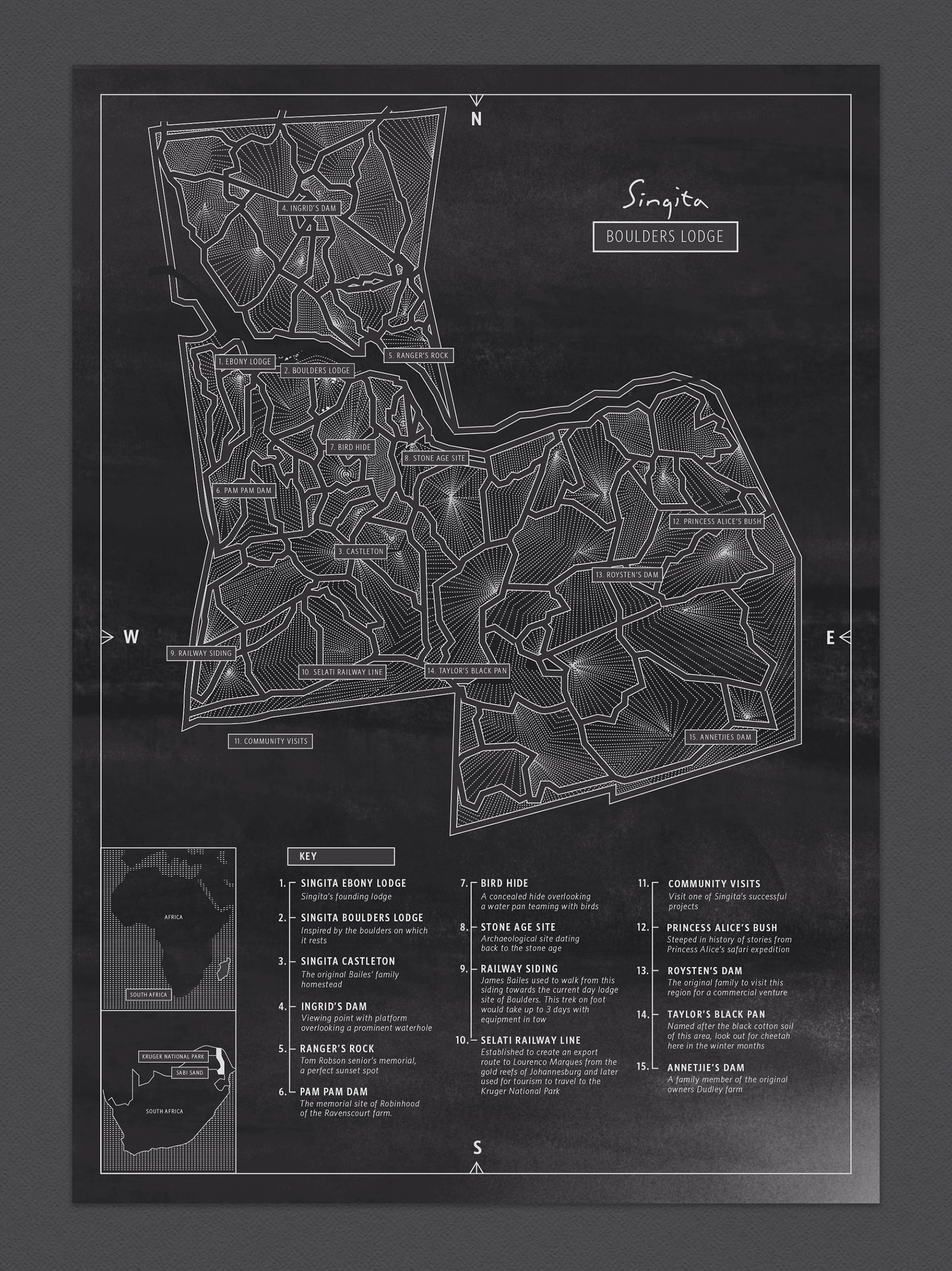 This collection showcase the collateral from the Singita lodges in South Africa and Zimbabwe