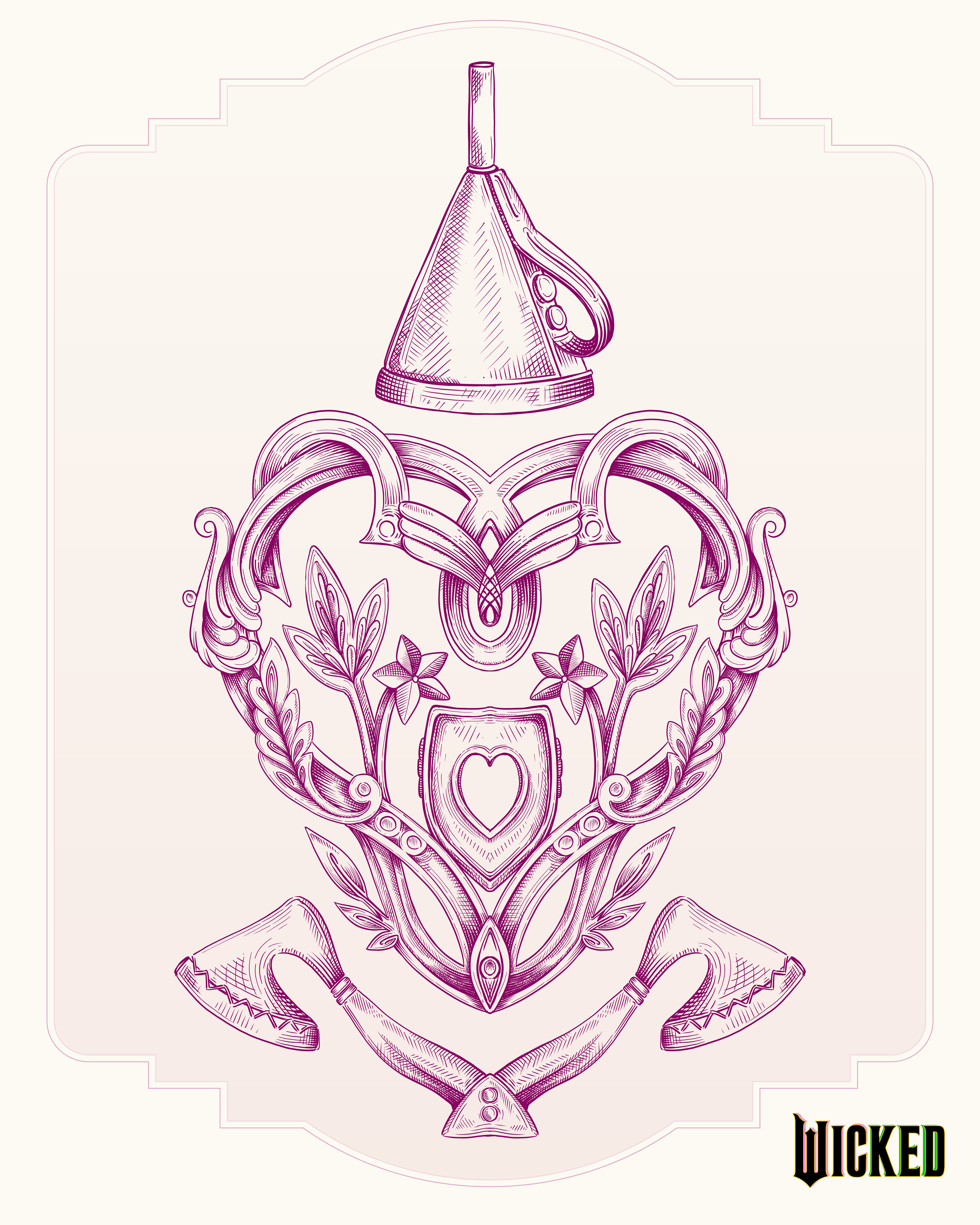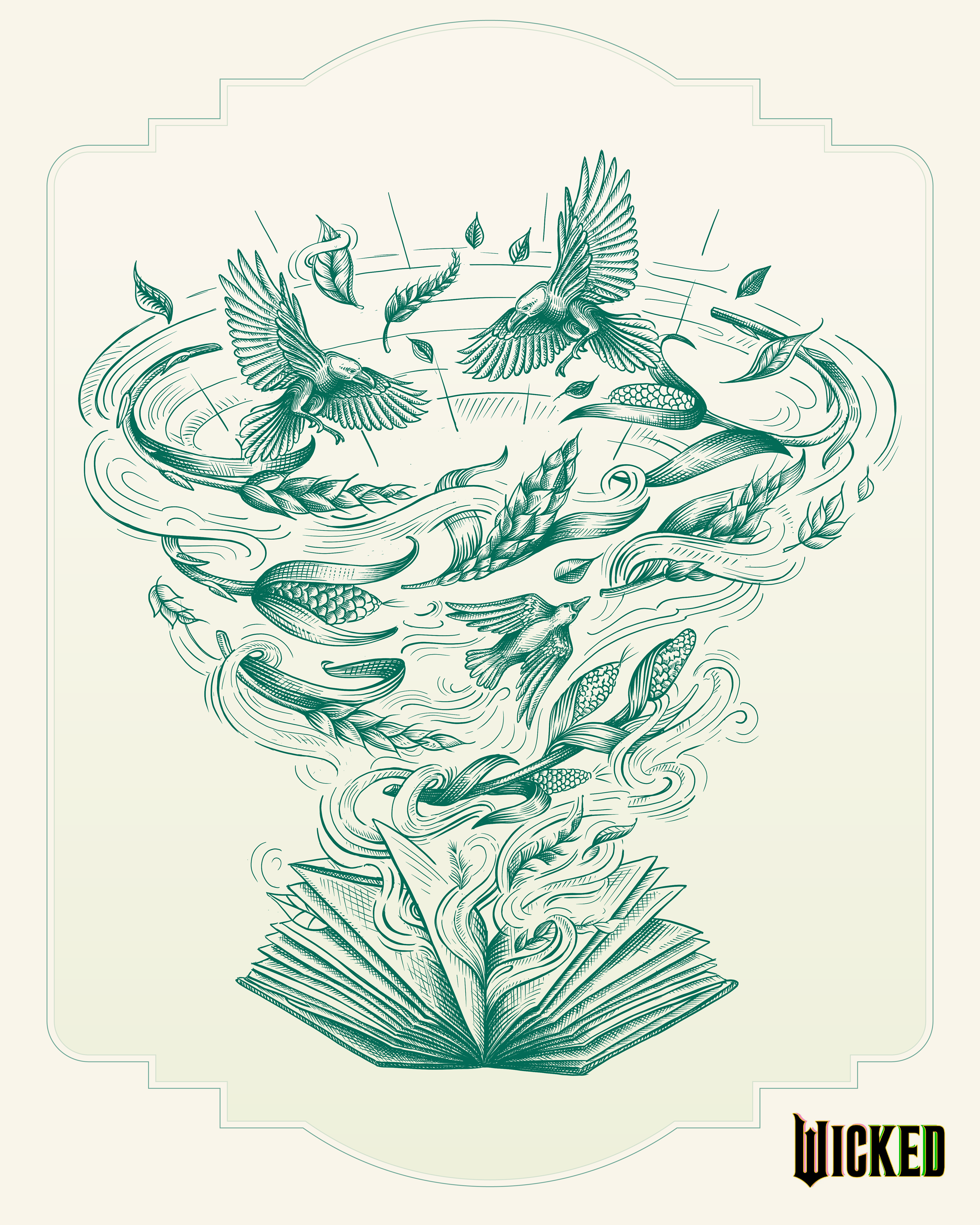 I was commissioned by Universal to create a collection of vector illustrations for the Wicked for Good movie. The illustrations were used to create a pattern for the Wicked for Good merchandise capsule that launched just before the premier of the new movie.